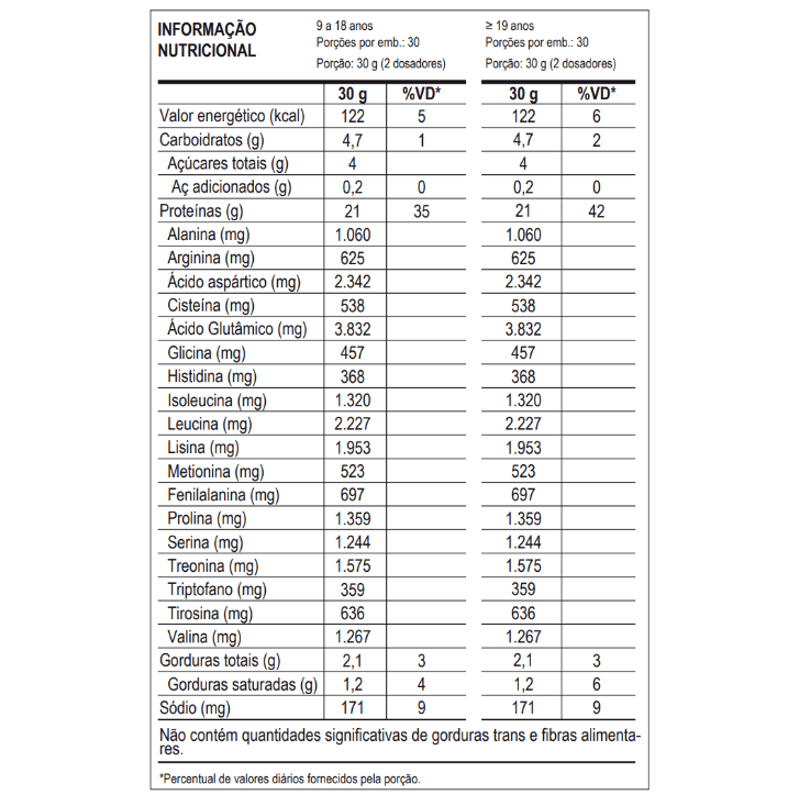 100% Whey é um suplemento a base de proteína concentrada do soro do leite (Whey Protein Concentrate), matéria-prima elaborada com alta tecnologia, de elevado valor biológico, rápida digestibilidade e alta concentração de aminoácidos essenciais, que são fatores de relevância para auxiliar a síntese proteica muscular.